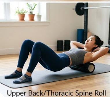 폼롤러를 견갑골 아래 위치에 가로로 놓고